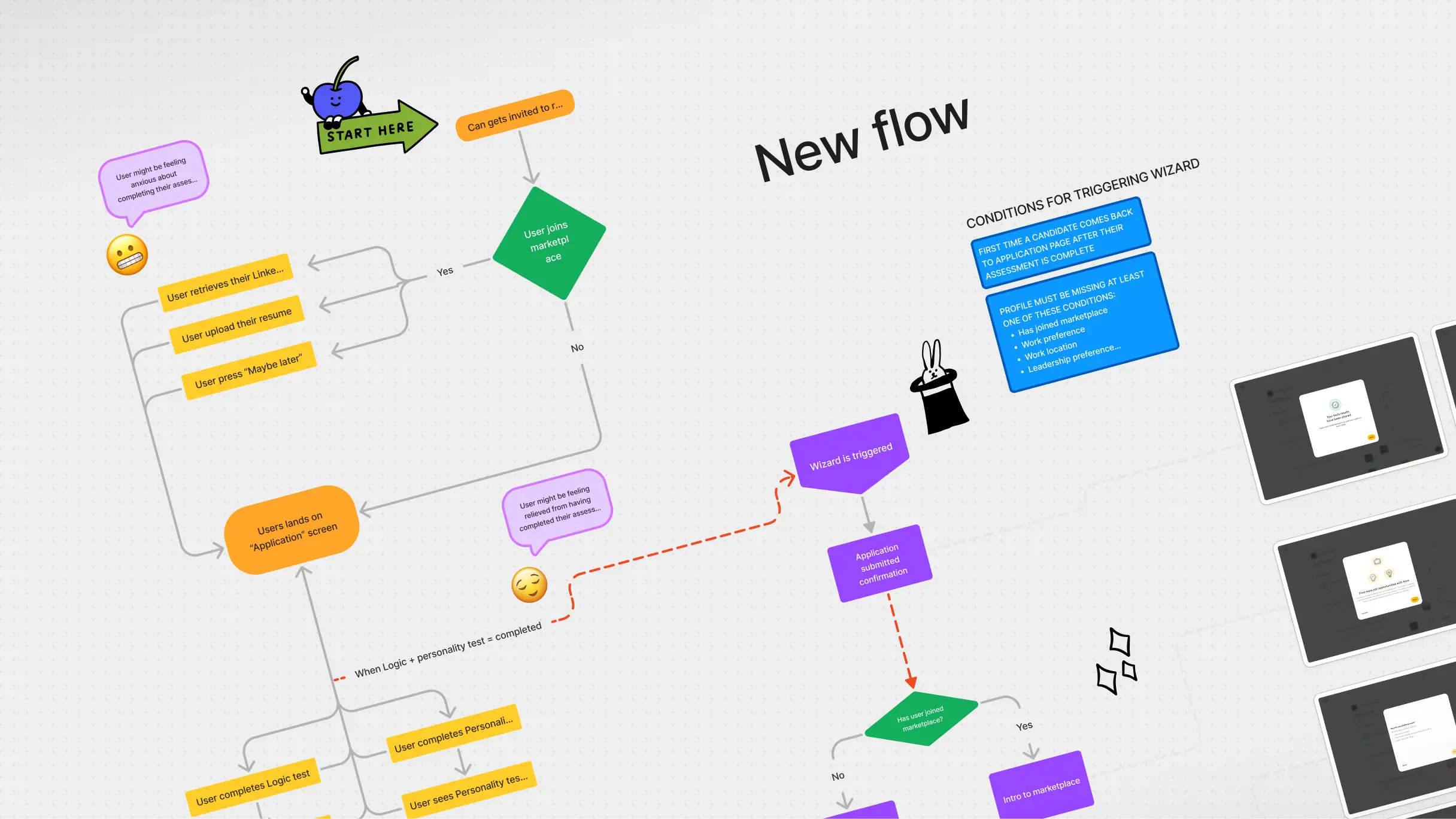 The challenge was to maximize conversion to the marketplace without negatively impacting the excellent candidate experience (91%+ completion rate). Working with the Candidate Experience team, we created a contextual onboarding system that intelligently prompts candidates to provide additional information at optimal moments: