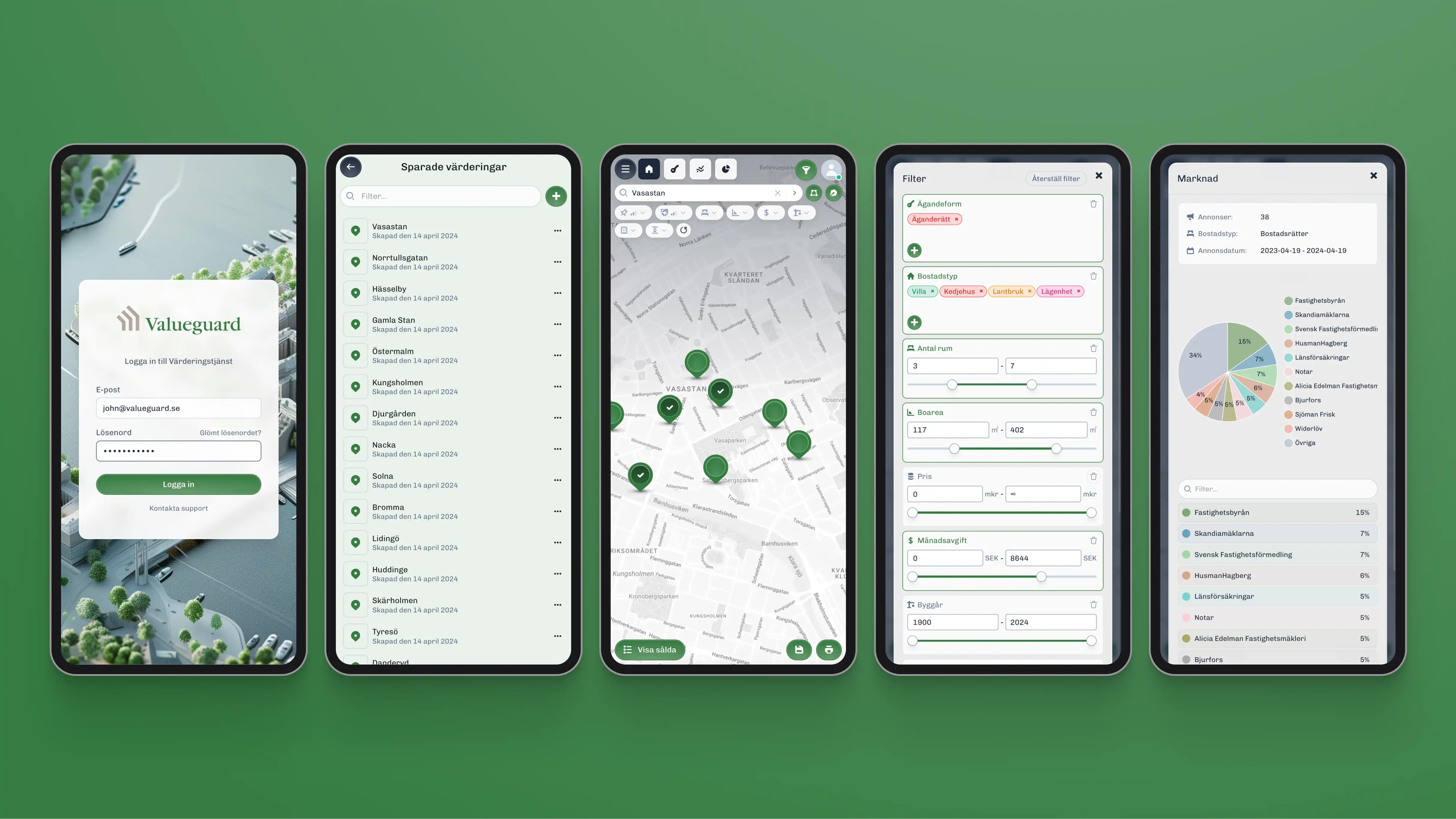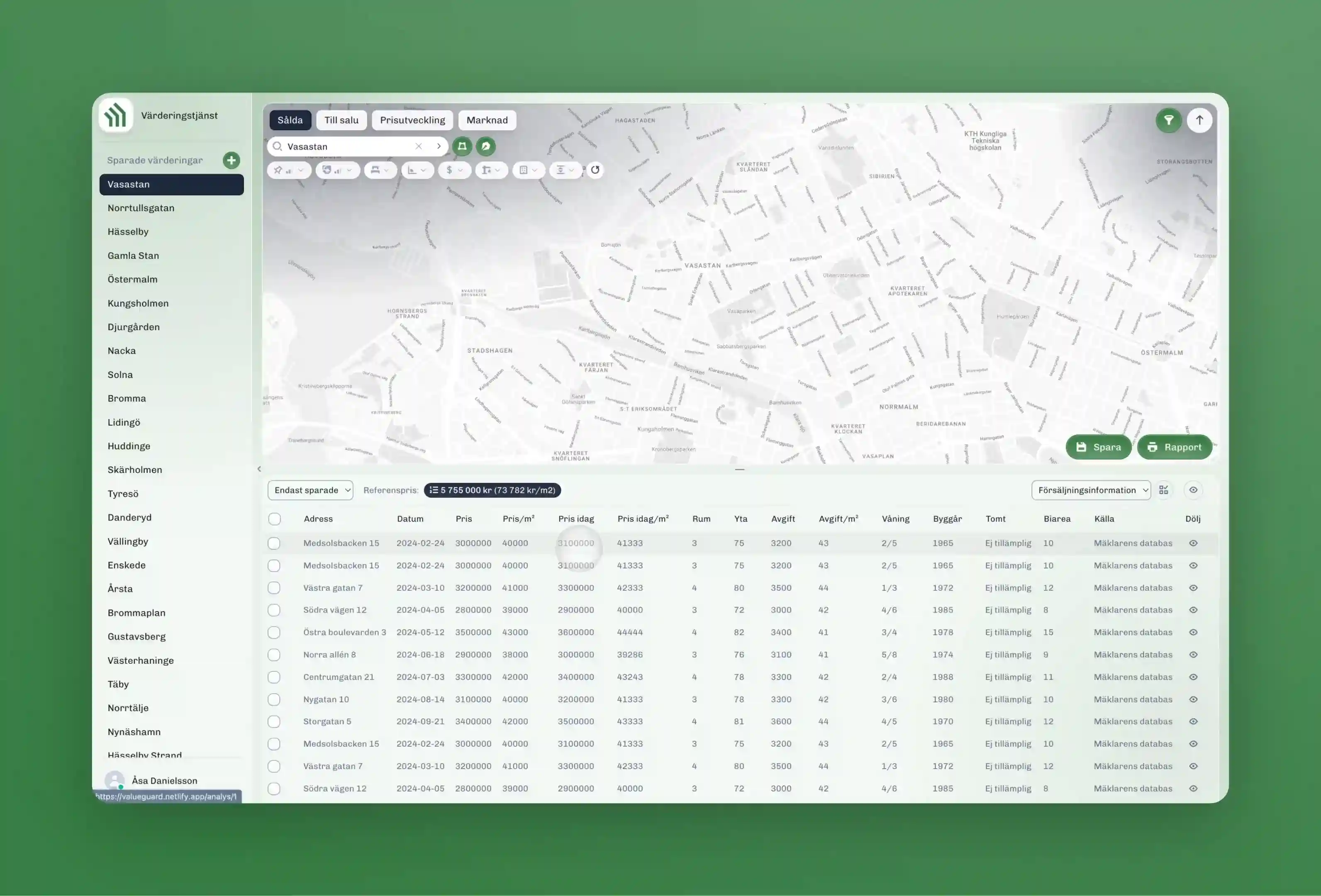 Valueguard's valuation service is like a treasure trove of real estate data. It offers detailed information on every property sold or listed in Sweden, complete with powerful search and filtering tools. Plus, it keeps agents in the loop with the latest market trends, helping them give spot-on advice to their clients.